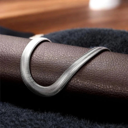 316L Stainless Steel Herringbone Snake Chain – 22" Silver Silk Finish