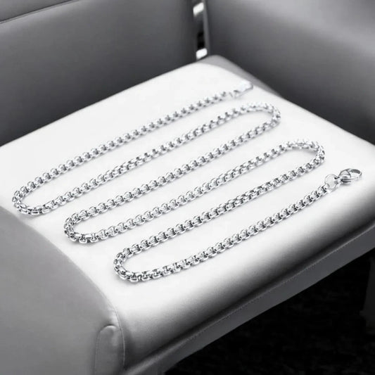 316L Stainless Steel Popcorn Box Link Necklace Chain for Men – Silver Finish