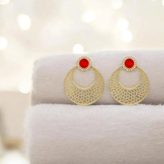 Antique Rhodium-Plated Chaand Bali Earrings for Women - Red Filigree Design