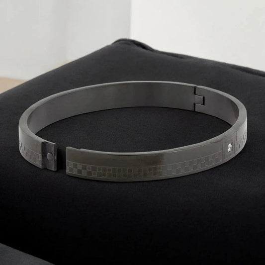 Black Stainless Steel Kada for Men with American Diamonds – Checkered Design Bracelet