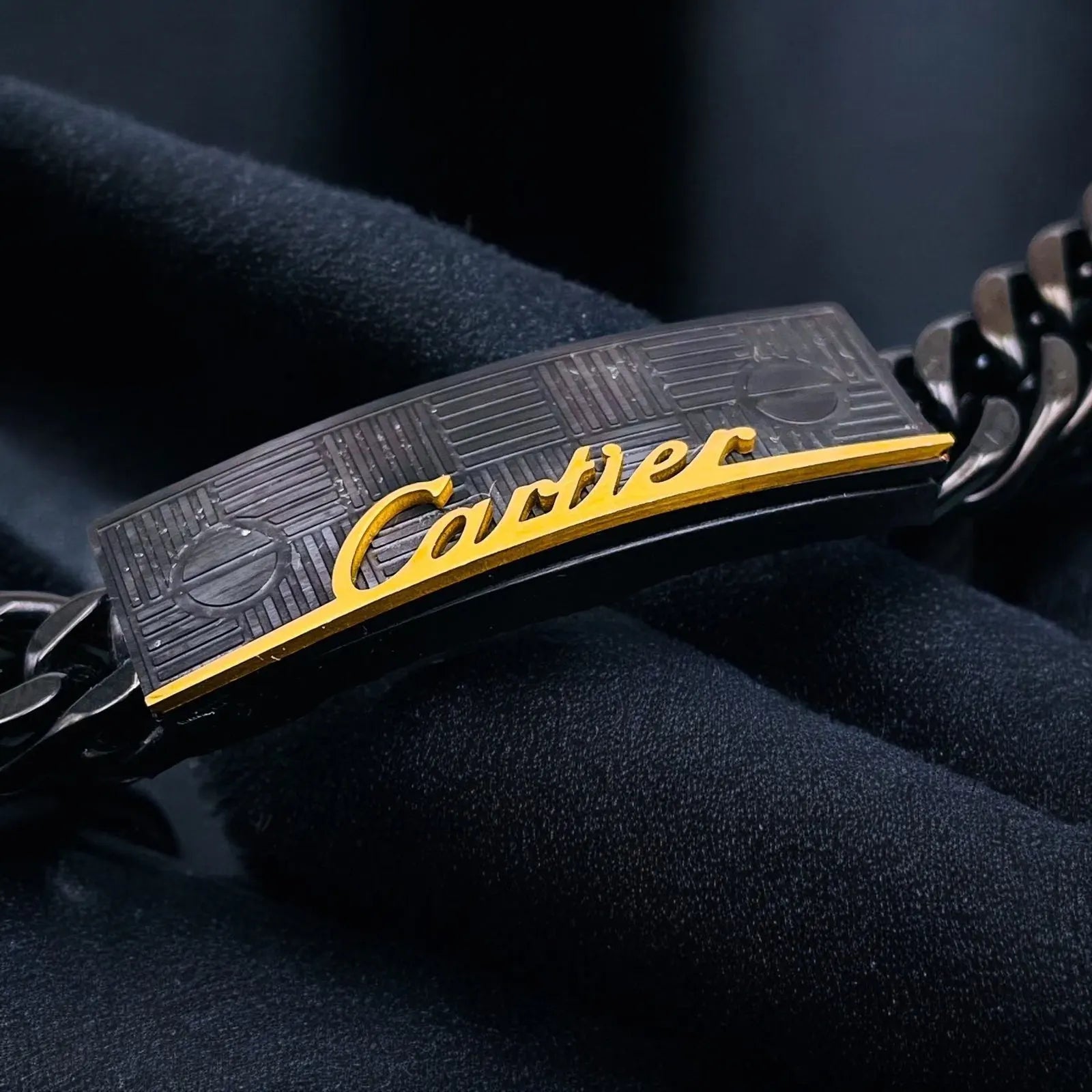 • Sleek & Modern Design – This ID bracelet for men showcases a sleek, minimalist plate with a bold two-tone contrast of black and gold, creating a luxurious yet versatile look. Its polished finish enhances its appeal, making it a perfect statement piece for any occasion.